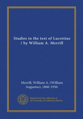 File Name: Studies in the text of Lucretius / by William A. Merrill.pdf